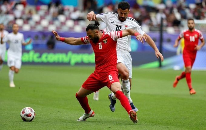 به گزارش خبرنگار مهر، تیم‌های ملی فوتبال عراق و اردن از ساعت ۱۵ امروز دوشنبه در ورزشگاه بین‌المللی خلیفه و با قضاوت علیرضا فغانی رو در روی هم قرار گرفتند که نیمه اول این بازی با نتیجه یک بر صفر به سود اردن به پایان رسید.